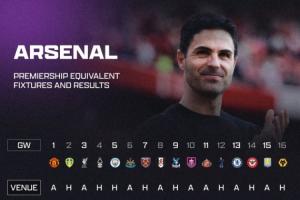 英超战至第16轮,阿森纳2分领跑英超积分榜,有媒体对比了阿森纳本赛季前16轮比赛,与上赛季相同赛程的16场比赛的战绩。