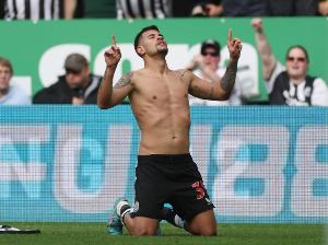 体育资讯12月6日讯 英超第15轮,纽卡主场迎战伯恩利。上半场纽卡2比0领先,其中吉马良斯角球直接破门。