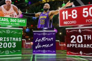 转播方ESPN晒出数据:詹姆斯2003年参加圣诞大战时18岁360天,历史最年轻。