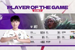体育资讯12月26日讯 Wei狼母团战游龙打出10-3-4战绩,拿到iG对阵TES的第三局比赛MVP。