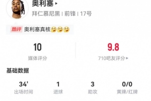 上一篇: 德甲替补上演助攻帽子戏法!奥利塞是历史第二人,首位是里贝里