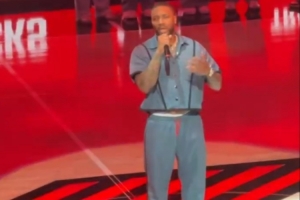 小吧现场直击>利拉德今天开场前为纪念马丁·路德·金致辞